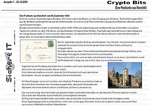 CryptoBit No. I is about a postcard written in 1902. It reveals some interesting information and need to be cracked.