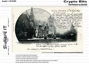 The CryptoBits are small riddles about and/or with - mainly historical - secret ciphers and codes. They will be published from time to time and are mainly in german language. If you solved one, you can mail me and will be listed on the website. Enjoy and have fun !