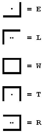 These nine field are not sufficient to represent 26 characters, so additional dots (one or two) help. Here are some examples.
