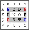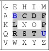 | Suchen wir zuerst einmal B und U in unserem 5x5 Alphabet und stellen uns diese als gegenüberliegende Ecken eines Rechtecks vor. |