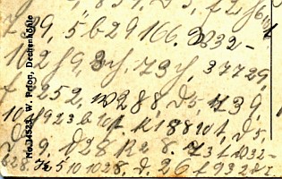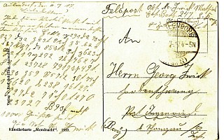 Schon seit einiger Zeit suche ich nach Postkarten (oder Briefen), die in Geheimschrift geschrieben sind. In aller Regel sind es Karten aus den Jahren um 1900 bis 1920, denen eines gemein ist: Es handelt sich um einfache Substitutions-Chiffren.